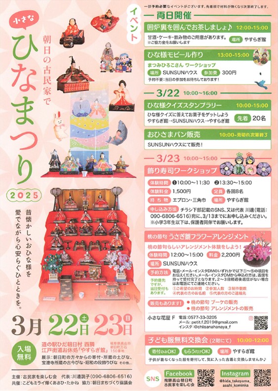 主催 古民家を楽しむ会 協賛 朝日まちづくり協議会 こどもミライ輝くあさひ・たかね |
