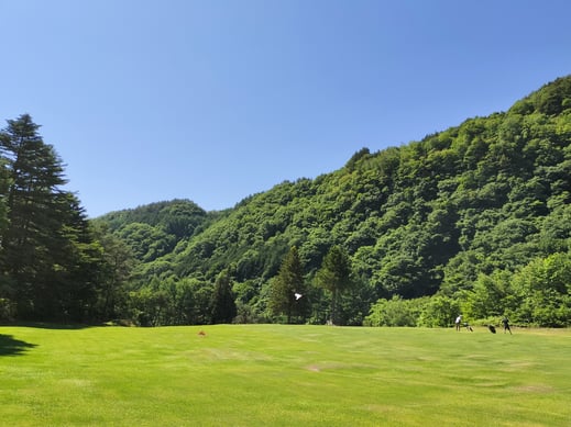 全11ホール全てPar3のショートコースで最長150ヤード。気軽にレジャー感覚でゴルフを楽しむことができます。 グリーンも綺麗に整備されており、コース内に池がありませんので池ポチャの心配はありませんが、清流青屋川の真横に位置するコースがありますので、池ポチャではなく川ポチャがあるかもしれません。初心者~中級者向きのゴルフ場で、2時間もあれば十分楽しめます。