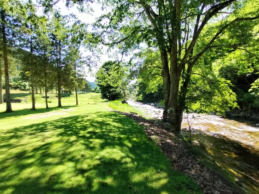 青屋川ゴルフクラブは旧高山市内から朝日方面へ飛騨ふるさとトンネル(美女街道)を抜けて、朝日小学校を通り、道の駅ひだあさひ村を越え、青屋方面へ車で10分くらい走った場所にある大自然がいっぱいのゴルフ場です。アクセスも道路幅も広く看板も出てますので分かりやすいです。