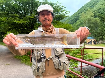 ・高山市朝日町内で釣ったアマゴ、イワナの渓流魚が対象です。朝日町以外で釣った魚の検尺は禁止します。