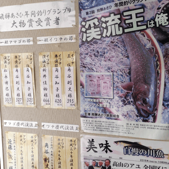 ・渓流王(優勝者)の名前と記録は道の駅・朝日町の宿泊施設に掲示され続けます。
