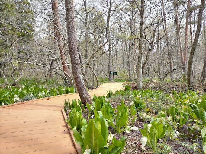 美女が池周辺には車いすの方でも楽しめる散策路があり、足が不自由な方でも水芭蕉をすぐ近くで見ることができます。