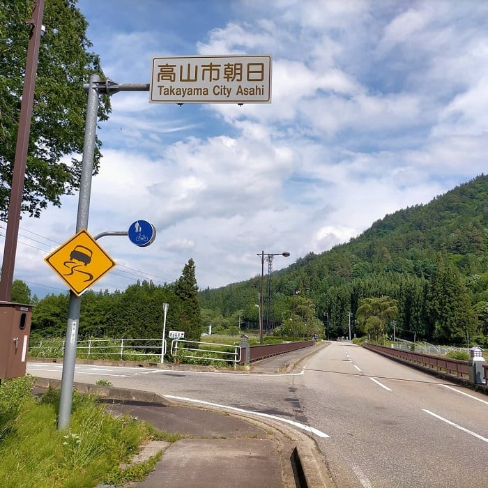 高山市街から飛騨朝日に向かい、国道361号線を進んでいくと、朝日町の入口に日の出橋という橋があります。釣り場はその橋を渡らずに、橋の手前を左折して100メートル付近が釣り場「豆田堤防下」となります。谷口建築の工場と太陽光発電パネルが目印です(^o^)