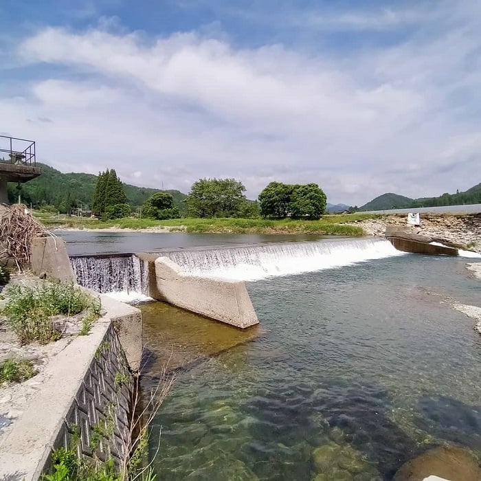 高山市朝日町見座日の出橋付近、豆田堰堤下釣り場。