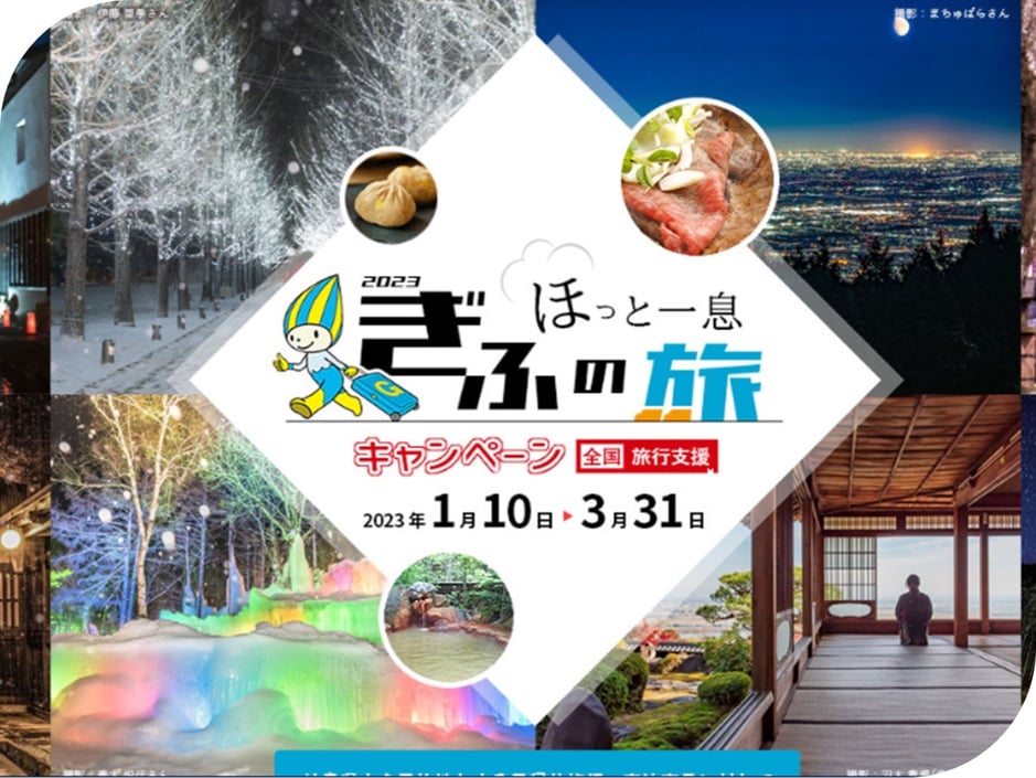 2022年12月21日に「岐阜県ほっと一息ぎふの旅 全国旅行支援第2弾」開催されることが情報公開されました。キャンペーン企画は1月10日~3月31日まで。まだしばらく旅行をお得に楽しめますね!この国をあげた旅行支援もいつまで続くものか…。今こそ日頃行ってみたい観光スポットに行くべき時かもしれません。