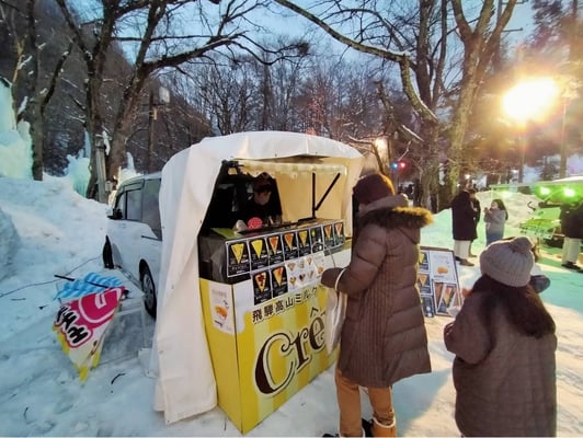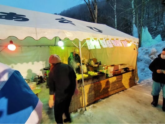 今までの氷祭りは入場料をいただかず、イベント協力金という形で寄付をお願いしておりましたが、今回は入場ゲートを作り、入場者皆さんに入場料をいただくことになりました。大人1名500円、子供1名300円。入場料としましては決して高くないかと思います。入場されたお客様の反応をみますと、どの方も快くお支払いいただいたようです。イベントに参加するにあたり、ある程度お金を払ってもよいと考えるお客様が増えたように感じます。イベント運営側としましては、入場料や駐車料金をいただいてでもイベント収入を増やし、少しでも運営を楽にしていただき、氷祭りだけではくあらゆる地域のイベントが継続できるようになっていただきたいです。持続可能なサスティナブルのイベント。これがアフターコロナのイベント形だと思います。